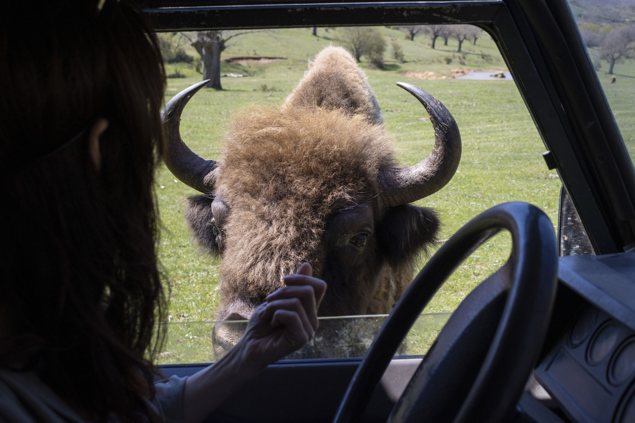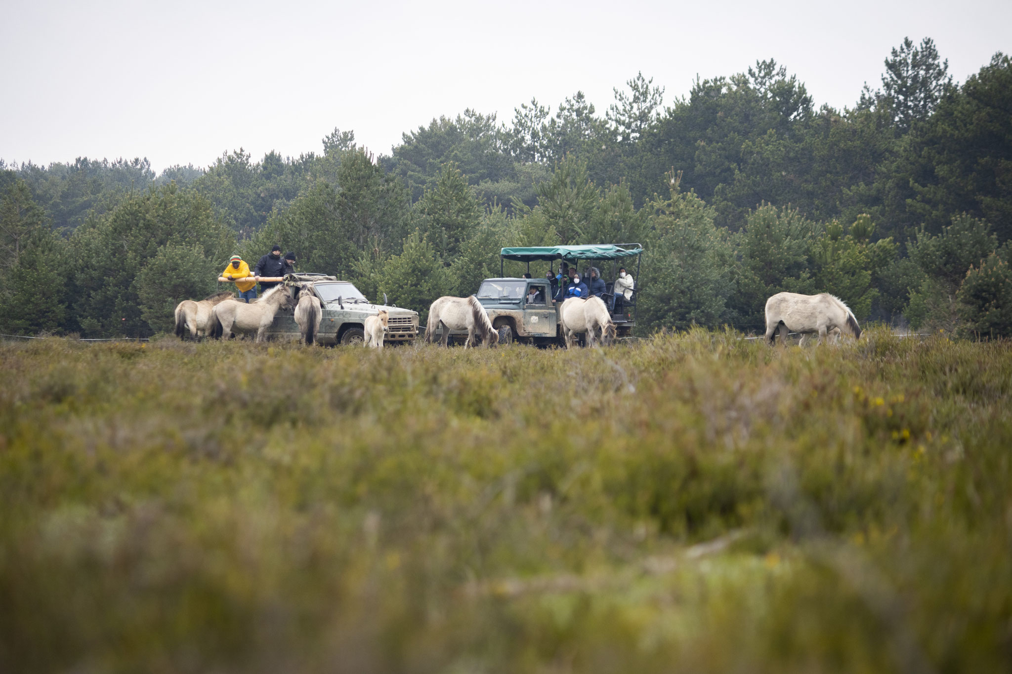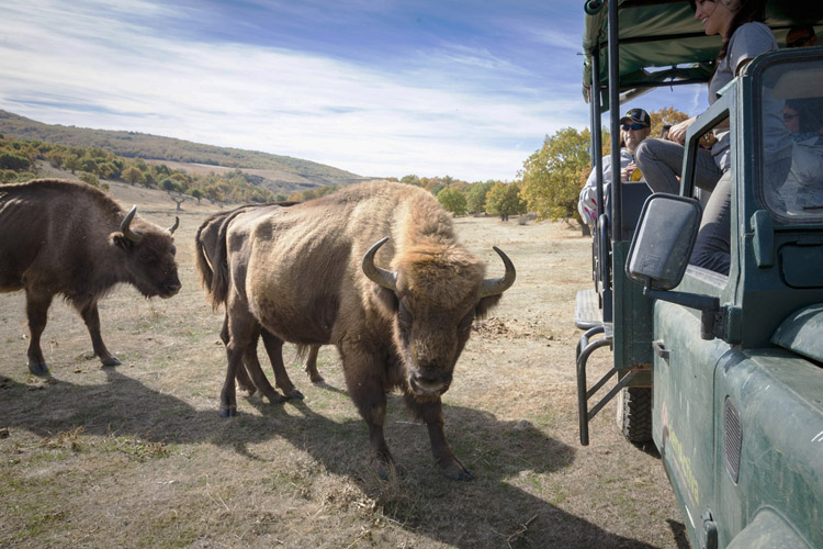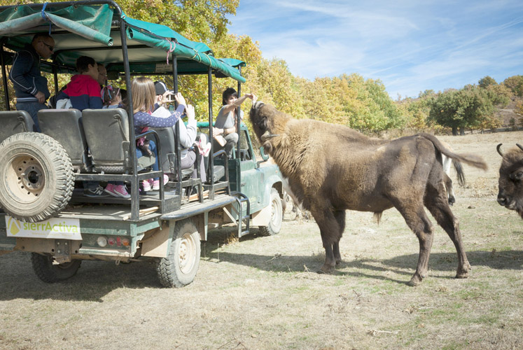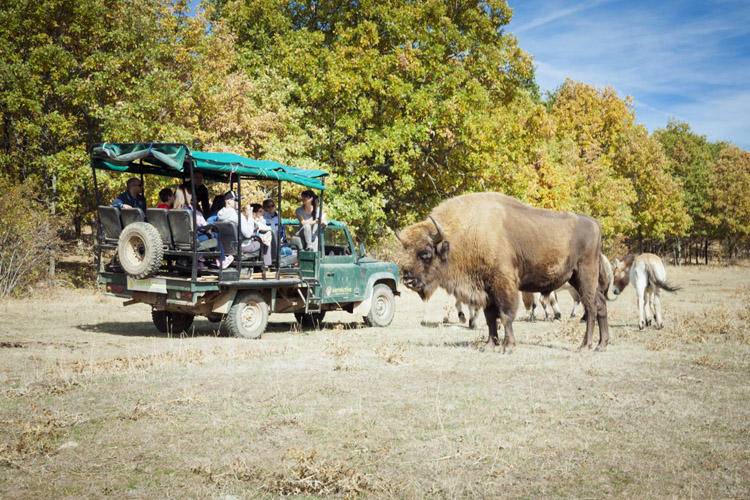 Se realiza acompañados por un conductor-guía especializado, pasando por las distintas localizaciones donde están los animales. En el transcurso del viaje se describe al completo el ecosistema prehistórico, el proyecto y las diferencias ente nuestros antepasados y nosotros. Se visitan las 4 especies intentando acercar el vehículo lo más posible a ellas y permitiendo a los visitantes un tiempo para las fotografías. También incluye un paseo por la reserva.
